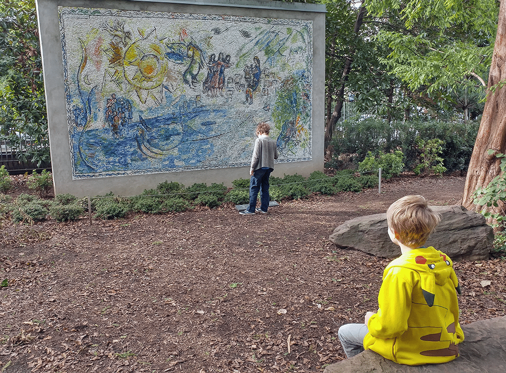 While we were dining at the National Gallery of Art’s Pavilion Cafe, a fellow traveler pointed out that the sculpture a few feet away was a mosaic by renowned artist Marc Chagall. Photo by Paul Nicholson.