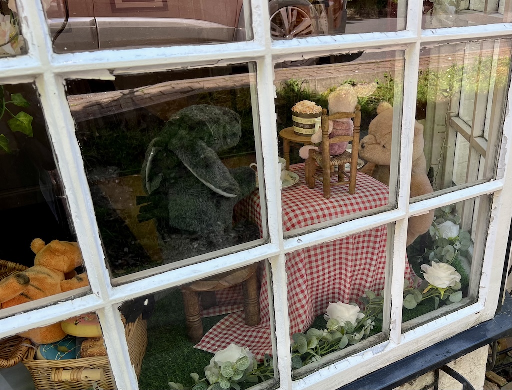 We stopped at the Hartfield Playground, a small park in the village, to give the kids some time to play and work up an appetite again after lunch before heading to Pooh Corner, a tea-room, museum, and gift shop. The building dates back to the 1700s, and Christopher Milne, the real-life Christopher Robin, remembers the shop in his memoir, The Enchanted Place, as the village shop of his childhood, where he would go to buy candies with his nanny.